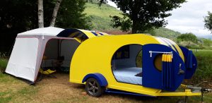 Teardrop idéale pour le camping itinérant. Pas besoin de permis, pas de surcoût autoroute. 750KG facile à tracter même voiture légère.
