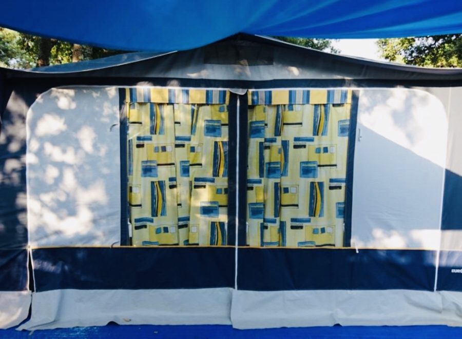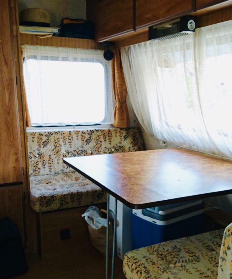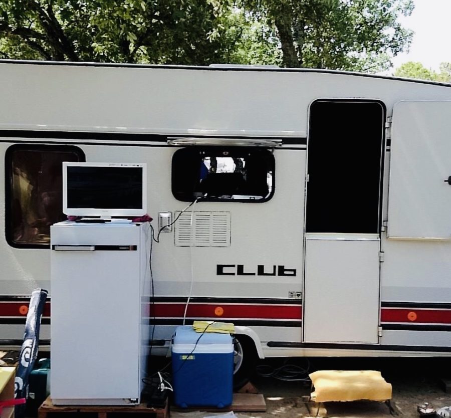 Achetée d’occasion et stockée dans le gardiennage où les anciens propriétaires l’avaient laissé. Pneus neufs de 2019, auvent inclu, frigo en +