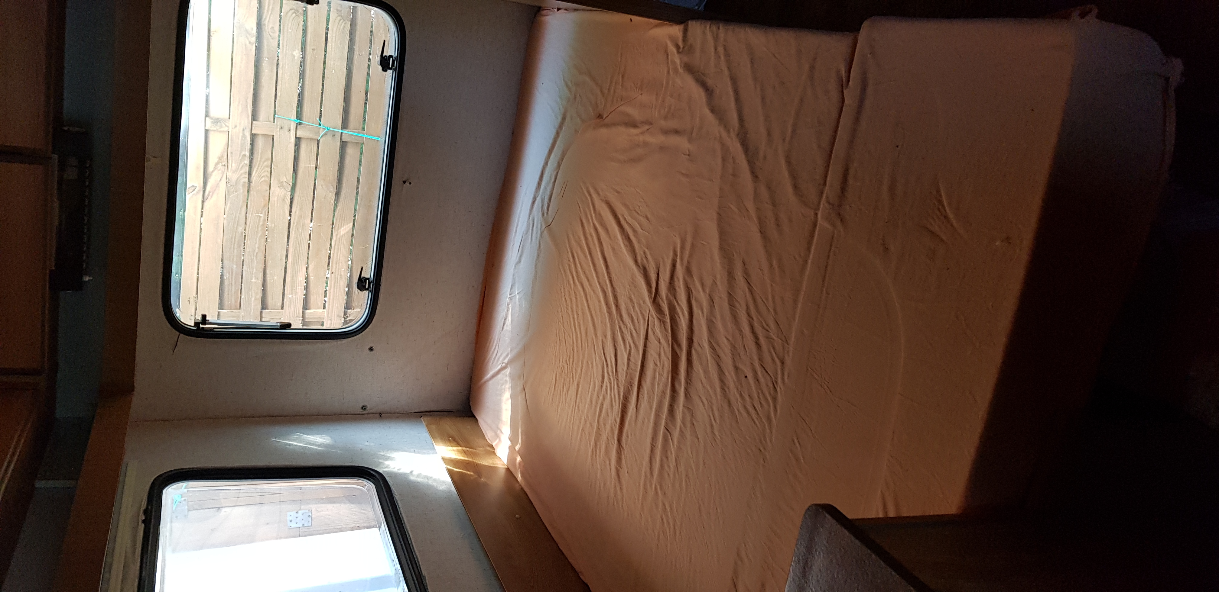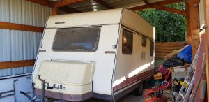 Auvent neuf (monté 2 fois); 2 pneus neufs +roue de secours avec pneu neuf; sous abri quand non utilisée ; housses de coussin refaites il y a 2 ans ; coin « salle de bain » avec tablette et armoire de rangement avec miroir ; petit frigo ; 4 couchage (2 lits de 2 personnes chacun)