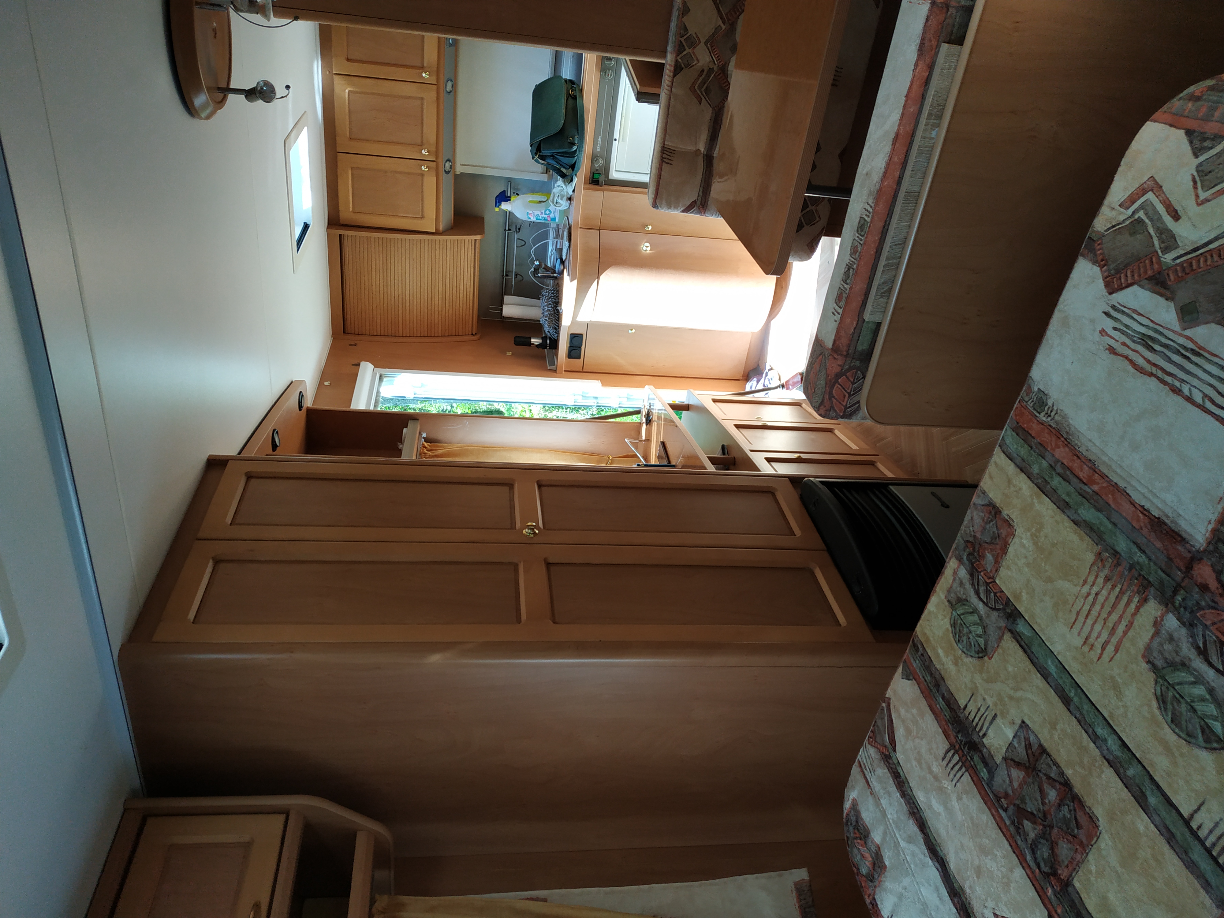 Lit central, douche, chauffage Truma, tapis de sol, auvent, solette, micro onde et gaz 2 feux pour auvent, antenne teleplus récente