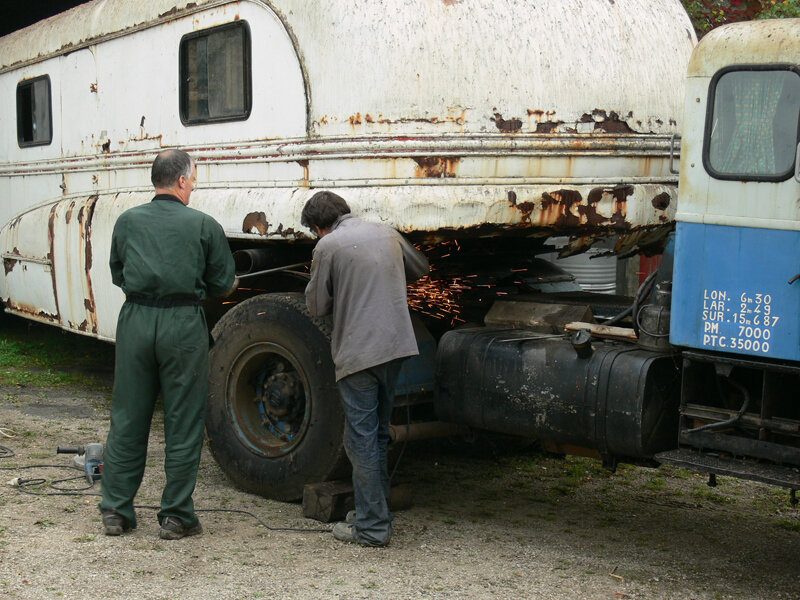 Vends semi remorque caravane directoriale de cirque , marque Assomption ,1952 , 2 essieux, comportant , salon arrière, cuisine, chambre enfants, salle de bains WC, chambre parentale sur le col de cygne. Beaucoup de travail de restauration, témoignage unique du savoir faire des toliers formeurs et du design des années 50.
