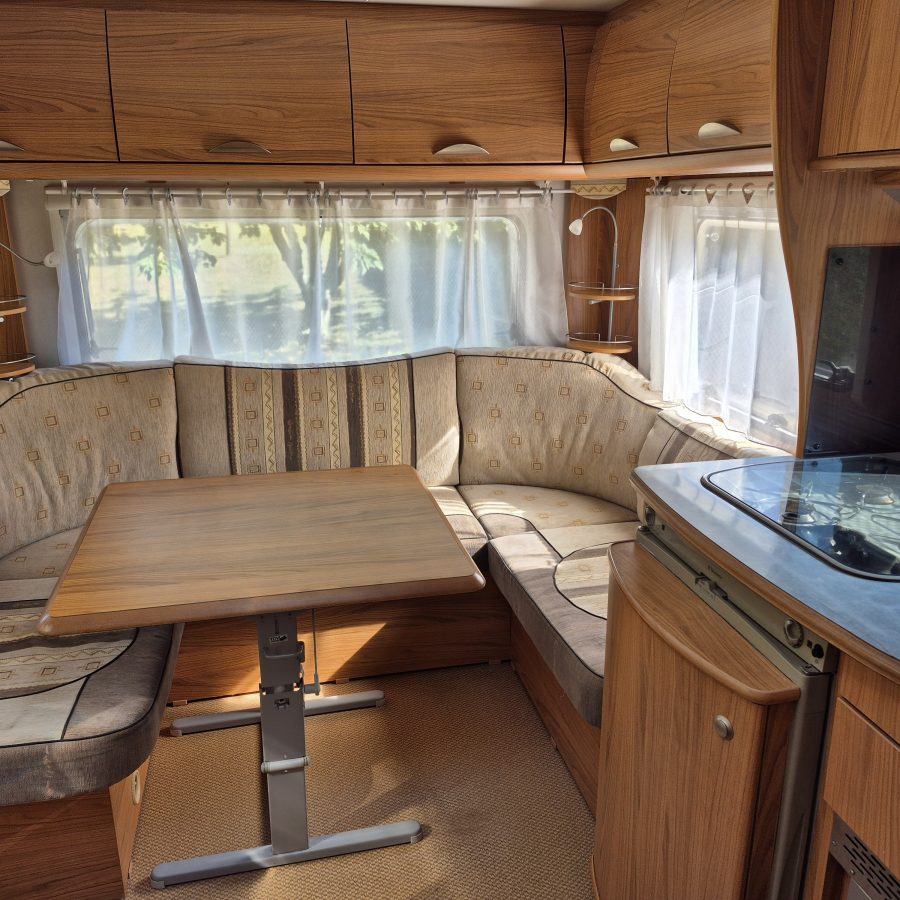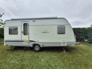 Caravane en très bon état 4 saisons, 4 couchages pour cause de non utilisation, avec Auvent, moover, four, micro-onde, chauffage TRUMA, frigo 96l, salle de bain avec douche et wc, parabole et salon de jardin.
