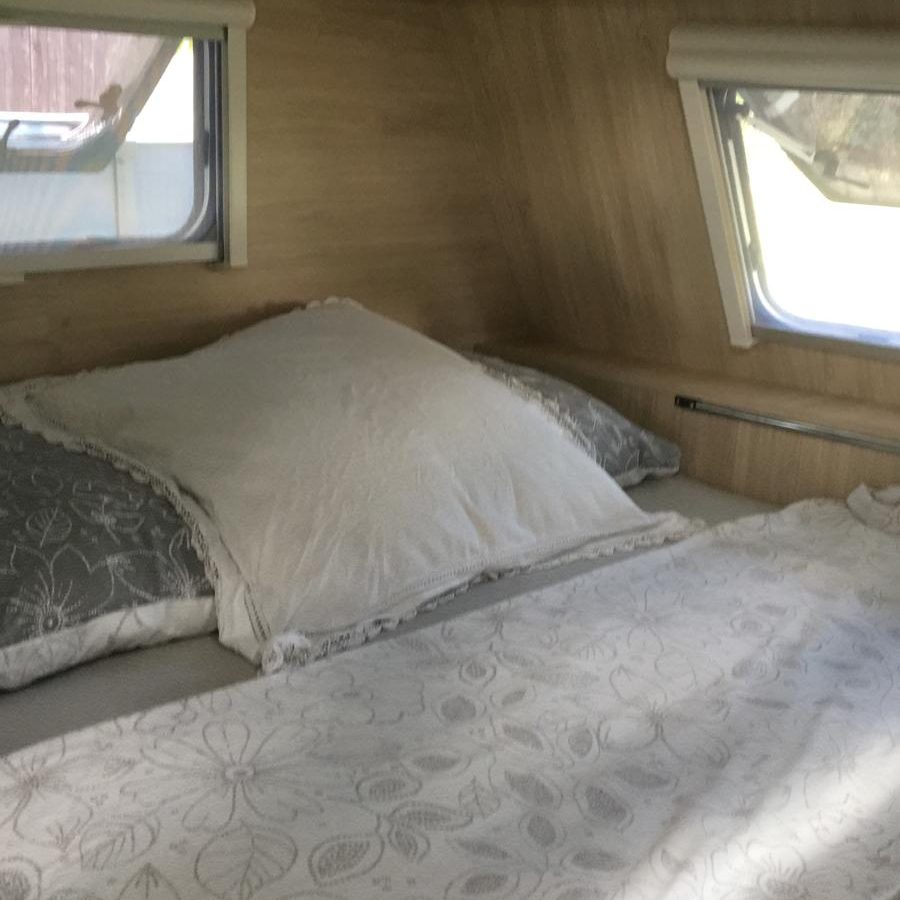 Nous vendons notre MINI suite à problème de santé. Achetée neuve juin 2024, elle n’a jamais quitté la maison. Donc en parfait état. Garantie toujours en cours jusqu’en juin 2026. Place de couchage 2 (190×140). Transformable rapide en table à manger. Roulable sans permis spécial. Idéale en hauteur (Toiture dépliable) pour accès parking 2m. H: 1.98m; L: 3.95m; l: 2.02m. PTAC 1100kgs. Refri et congel: 85l (Gaz et électricité 12v ou 220v) Plaque de cuisson 2 feux, inox (Compartiment à gaz) Evier cuisine et lavabo salle de bain inox Reserve eau propre: 20l Éclairage LED plus lampe de auvent Antilacet Roue de secours WC cassette Équipement meubles de rangement Baies AV, AR et latérales ouvrantes double vitrage munies de stores occultant et moustiquaire Spots lecture et prise USB Transfo 220/12v avec disjoncteur. Équipée d’une batterie, montage concessionnaire. Prises 230v. Pré-équipement TV . Le châssis et timon galvanisés. Enjoliveurs de roues. Marquage anti-vol.