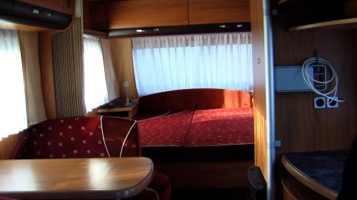 | Equipements | lit four réfrigérateur moustiquaire eau chaude douche chauffage toilette auvent lit central antenne tv réservoir eau roue de secour chauffage gaz |