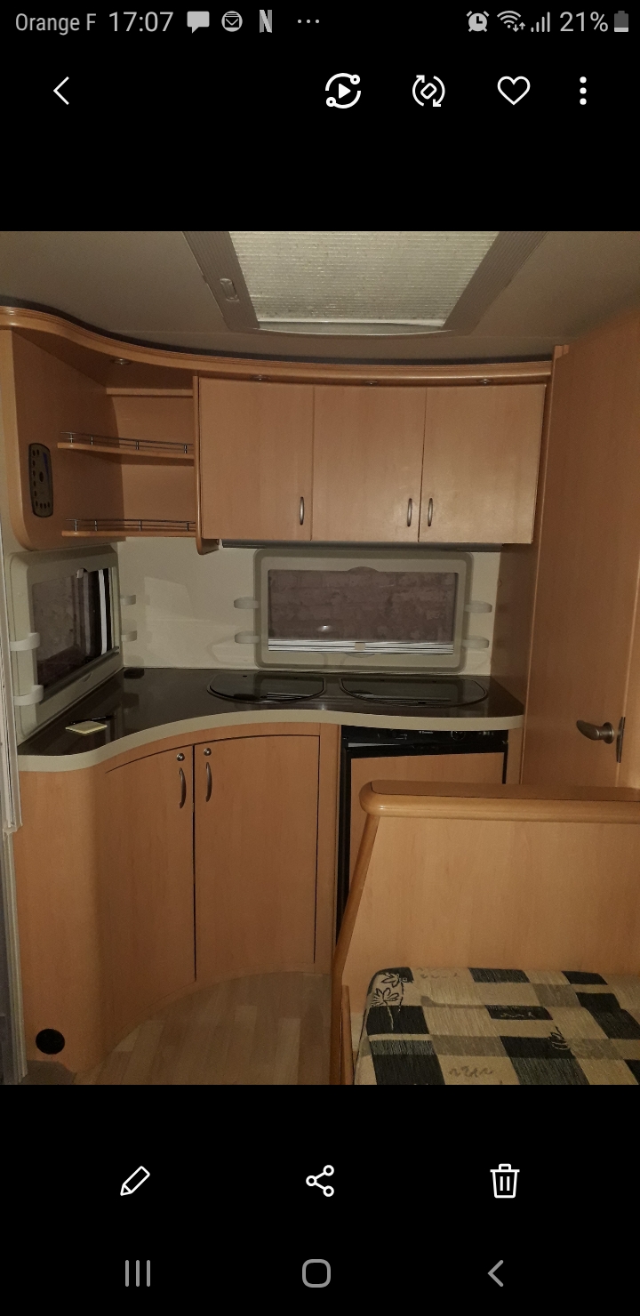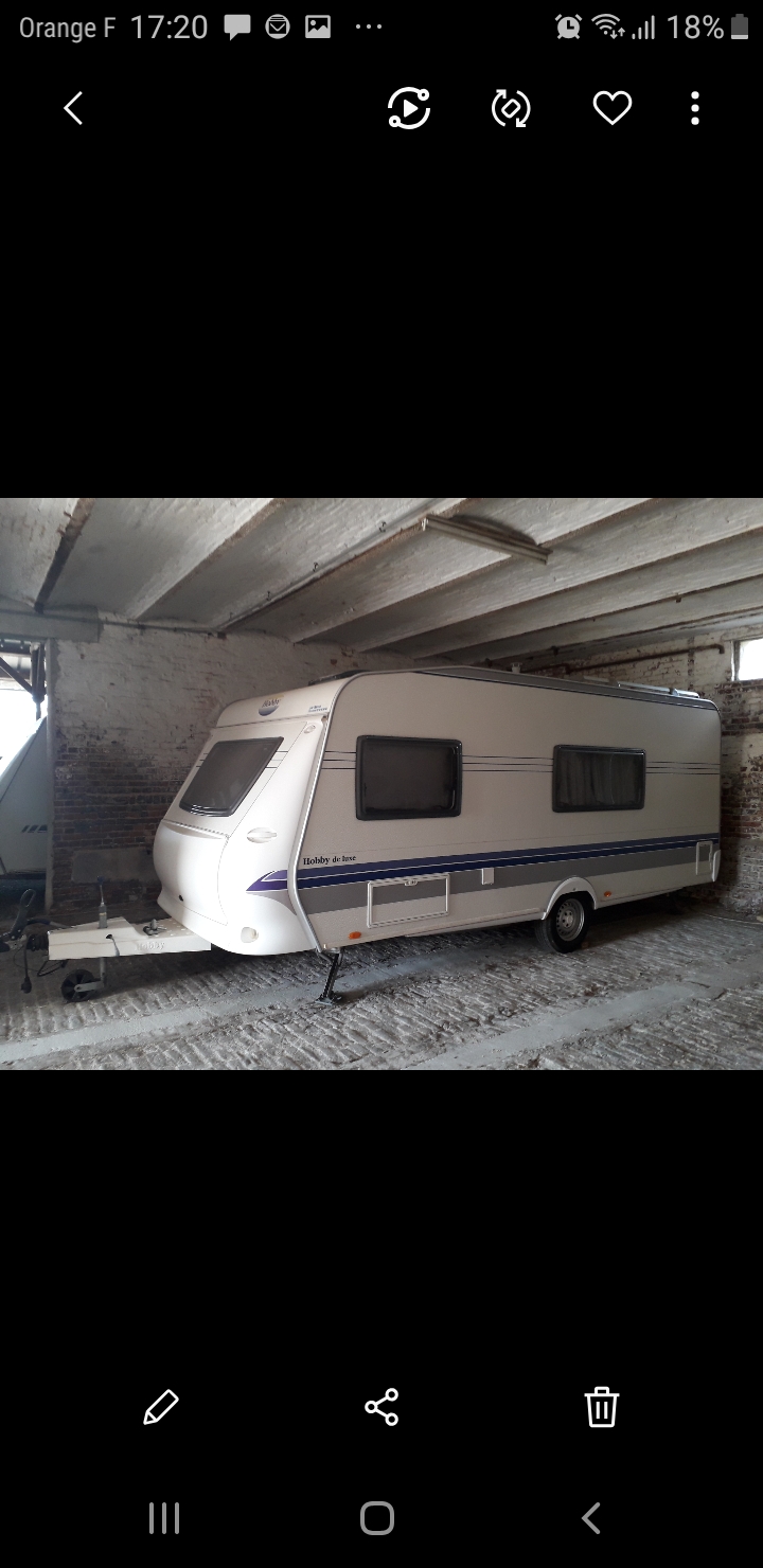 ndons notre caravane « Hobby 520 TMF Excellent » en excellent état intérieur comme extérieur, stockée en hivernage dans un bâtiment pour maintenir une bonne isolation et étanchéité.