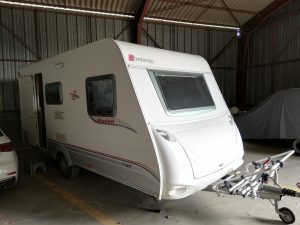 Antenne TV / Porte vélo / Lampe extérieur / Trappe de toit / Auvent offert (non intégré dans le prix car une barre défaillante mais remplacable ou utilisable) / coffre avant intégré /soute à vélo