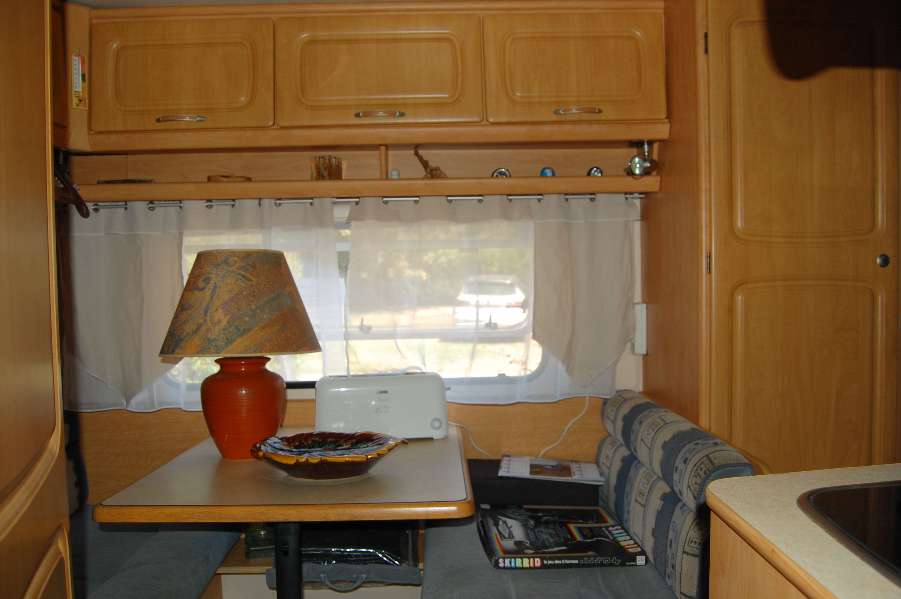 Equipements | lit réfrigérateur moustiquaire douche chauffage toilette auvent antenne tv déplace caravane roue de secour chauffage gaz cuisinière |