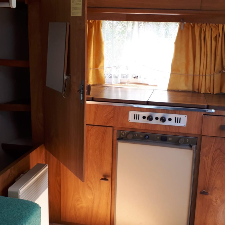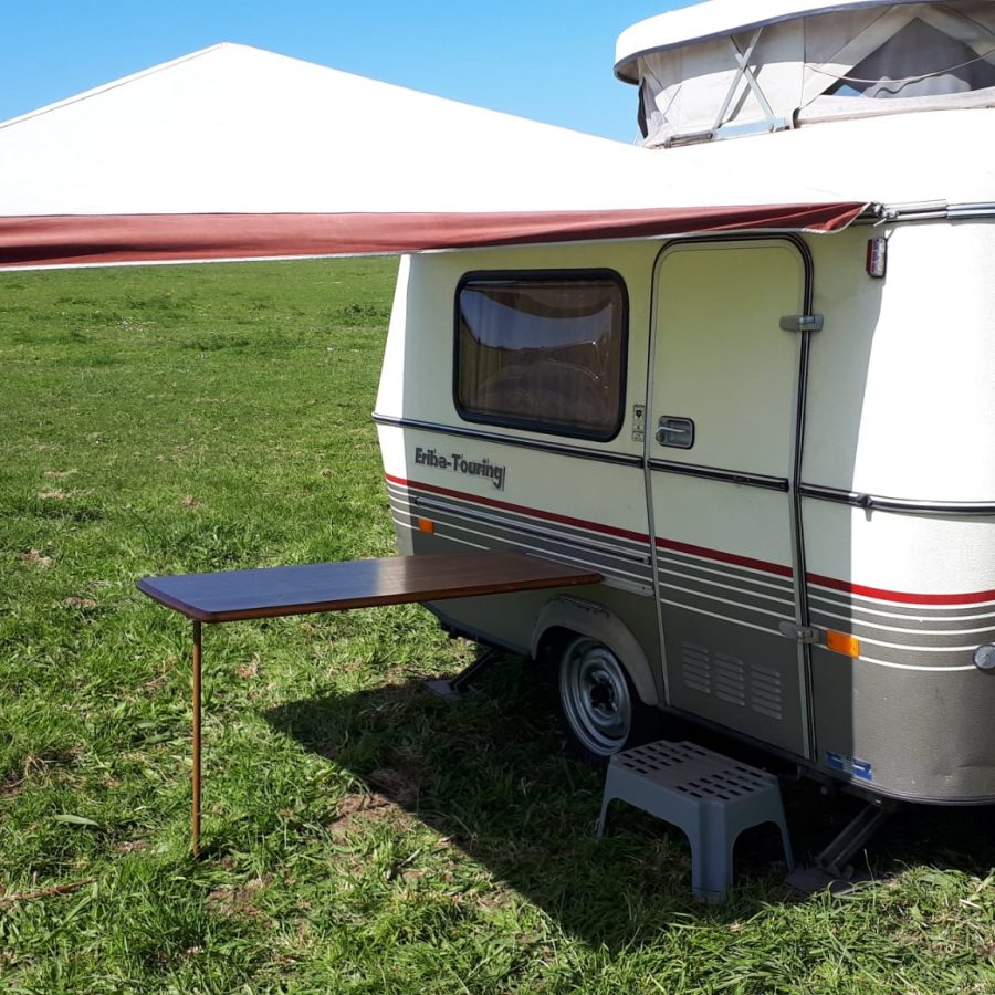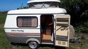 Eriba puck 1989, avec socaplaire et 2 joues latérales, réfrigérateur tri mixte,roue de secours,chauffage électrique. Hivernage à l’abri. Visible à Saint Pierre église ( 50 Manche )