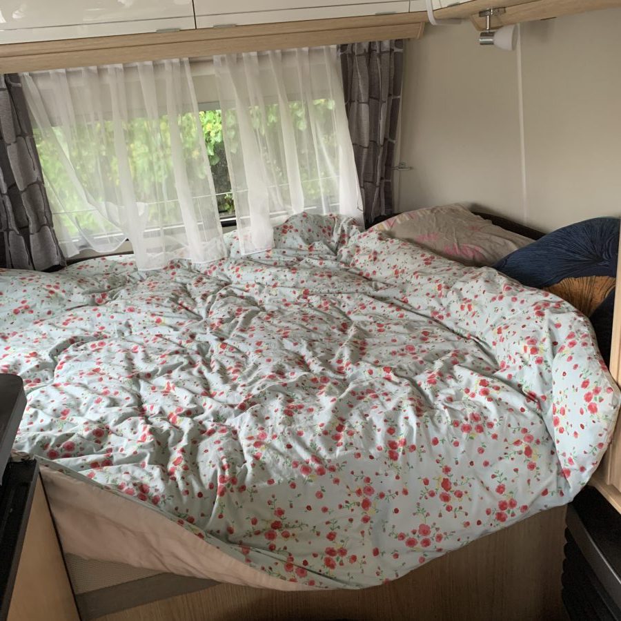Equipements | lit réfrigérateur moustiquaire eau chaude toilette réservoir mobile auvent porte vélo lit central réservoir eau réservoir eau usée déplace caravane chauffage gaz cuisinière |