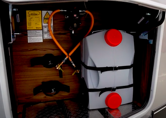 Réservoir eaux usées 50 l sous plancher, isolé et chauffé avec tuyau de vidange isolé et chauffé