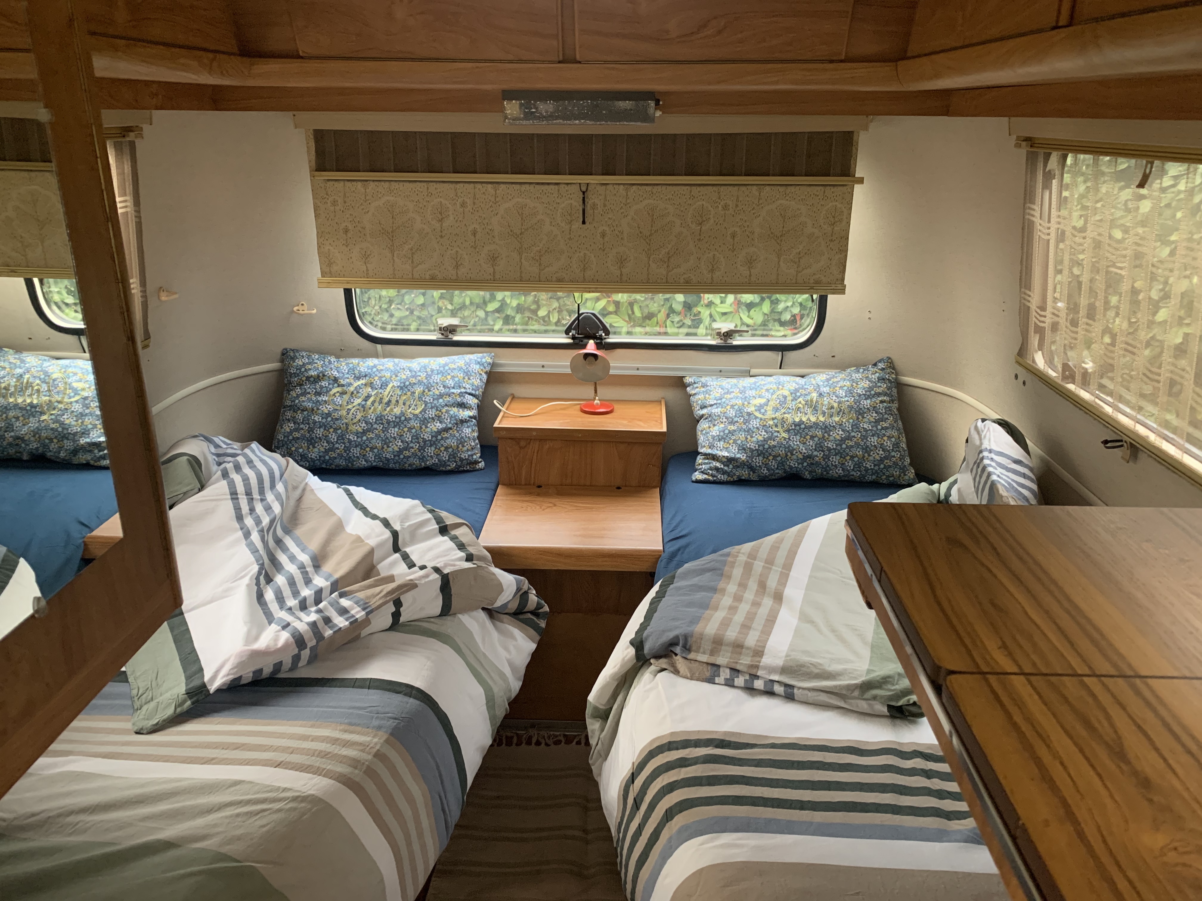 Transformations :lit permanent transformé en lits jumeaux,plus de cuisine,(pour gain de place),petit évier frigo remplacé par grosse glacière