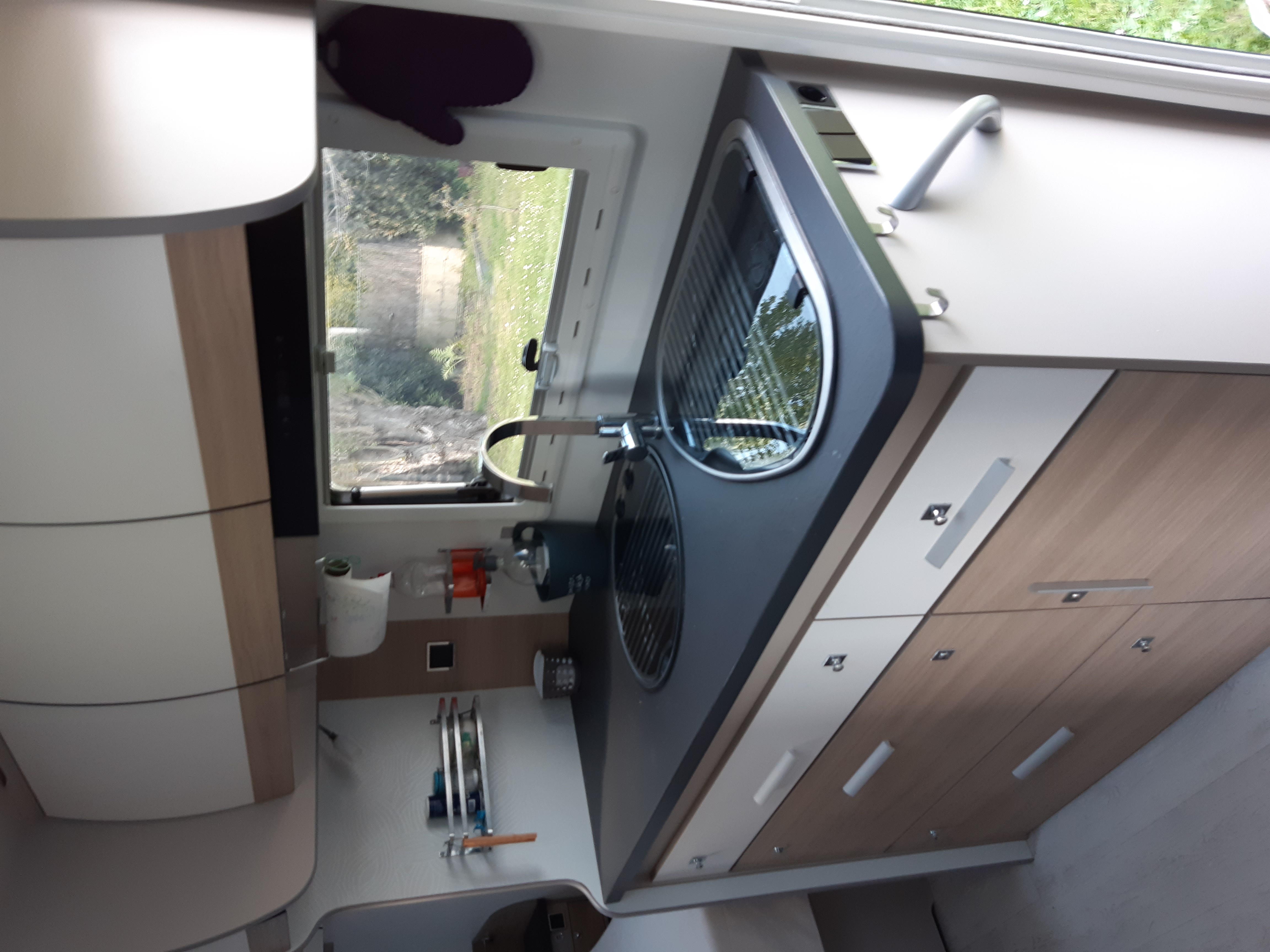 hotte aspirant ; grand frigo + congélateur. lit centrale 1.50×2.m00 salon en u .;cabinet de toilette avec wc et douchette ; prise pour douche en extérieur jante alu