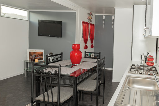 Cuisine neuve entièrement équipée frigo encastré congélateur, four, plaque à gaz, télévision dans le salon et la chambre, éclairage leds basse consommation table à manger métal et verre avec ses 4 chaises, canapé convertible 2 places, tables basses gigognes, tout reste dans la caravane pour la vente.