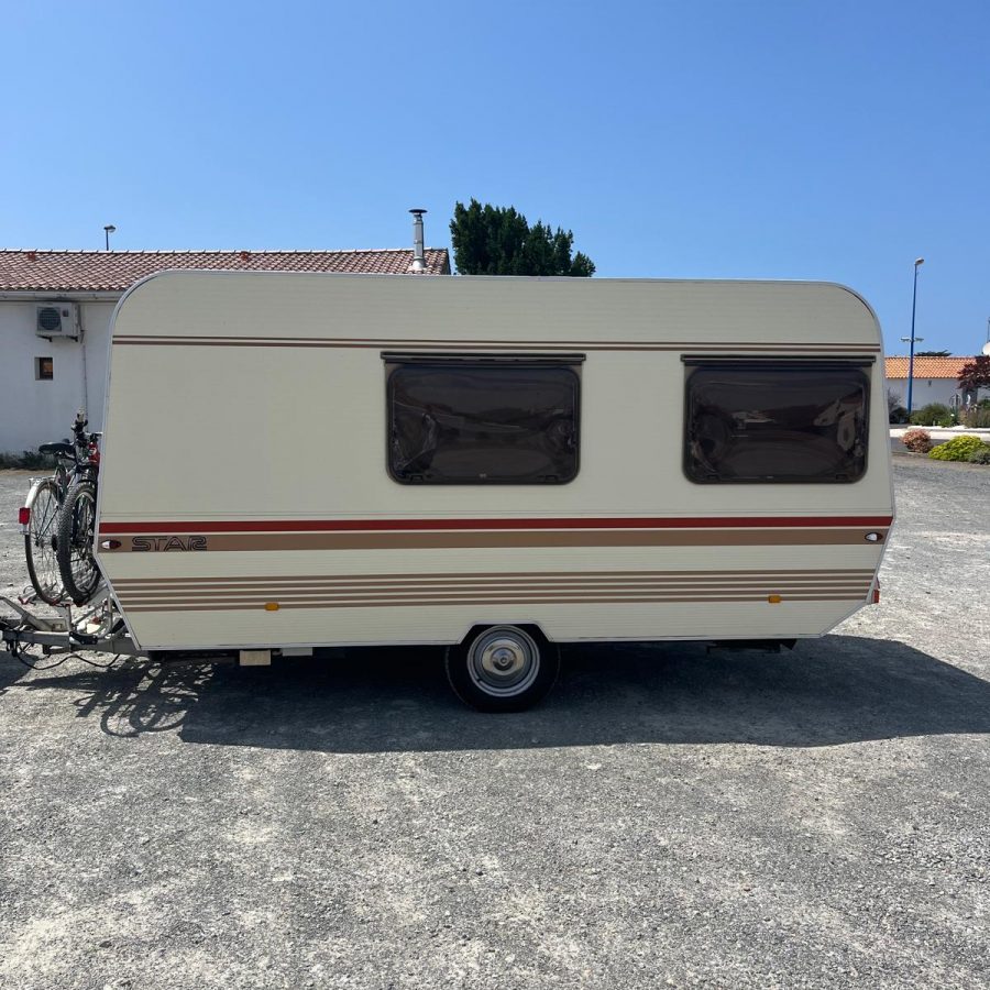 Description : Je vends ma caravane KINGSTAR BT44B de 1981, idéale pour les vacances en famille de 4 personnes ou un projet vintage. Modèle spacieux et robuste, bien entretenu et stocké à l’abri hors saison.