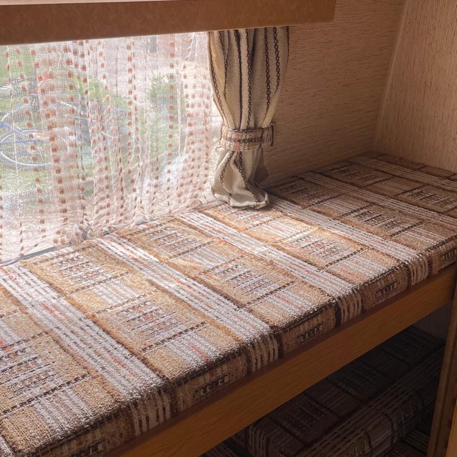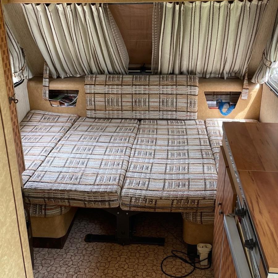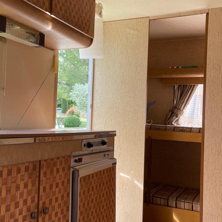 La caravane possède 4 couchages dont une chambre indépendante (avec 1 lit superposé) et une banquette convertible en lit double.