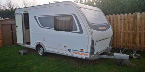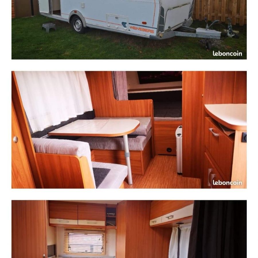 A vendre caravane WEINSBERG 4 places: 1 couchage 140×190 + 1 lit dinette 2 personnes