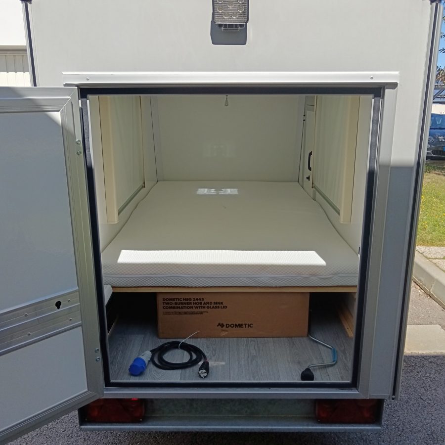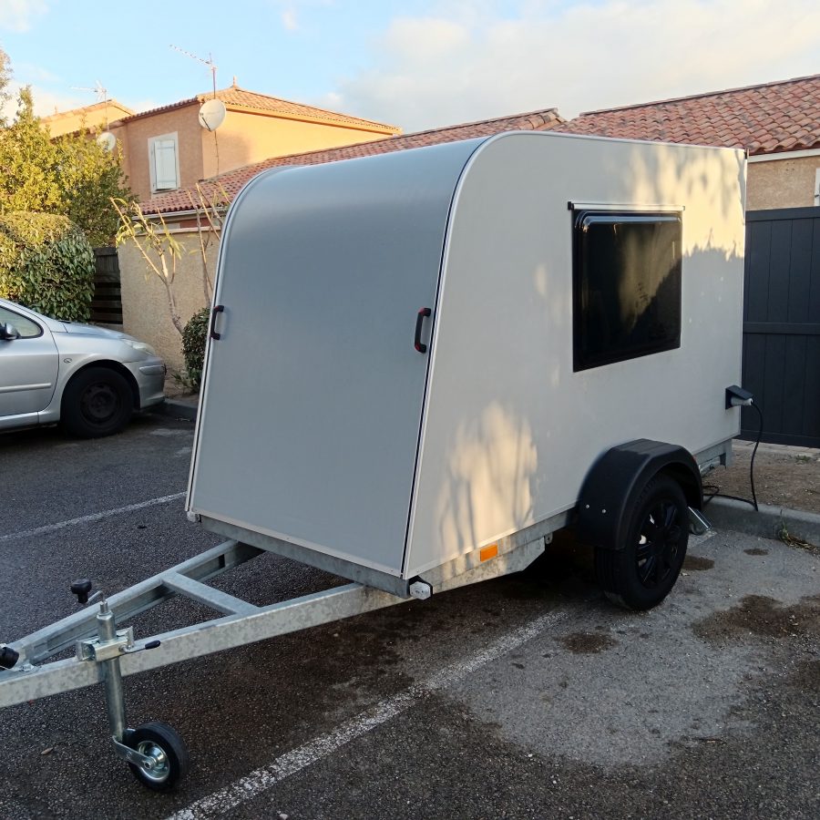 AFFAIRE UNIQUE A SAISIR MINI-CARAVANE XARAVAN X120 SERIE SPECIALE LIMITEE TOUTES OPTIONS POLYESTER 320 KG A VIDE ,MULTIFONCTIONNELLE , MOINS DE 2M (autoroutes) REGLEMENTATION REMORQUE NOTAMMENT STATIONNEMENT NOCTURNE AUTORISE PARKING VOITURES PTAC DE 490KG. PHOTOS AVEC OPTIONS INCLUSES Isolation styrofoam 25 MM été / hiver (excellente isolation toute l’année) POUR DE MULTIPLES USAGES POUR randonneurs, marchandises, chambre d’appoint, sportifs, chasseurs ou pêcheurs ( 4/5 places avec tente de toit (en option), cat.1 sur autoroutes) Hauteur 1,98 m (pas de supplément sur les autoroutes). Essieu AlKo en acier soudé et galvanisé à chaud par trempage Roues 155/80R13, parois sandwich avec revêtement polyester intérieur / extérieur Le plancher contreplaqué marine15 mm Deux éclairages LED Matelas 120 x 200 cm avec housse de protection antibactérienne Deux baies latérales à double vitrage et cassette store/moustiquaire Deux vérins de stationnement Rallonge P17 Lanterneau Heki avec store cassette/moustiquaire. Très nombreuses options incluses : module électrique complet avec transformateur, portillon latérale avec serrure, rail aluminium sur le côté droit pour jonc d’auvent, projecteur à LED à l’arrière de la caravane,, deux poignées de manoeuvre sur la face avant, deux enjoliveurs de roue, sommier à lattes. Livraison possible (sur devis) sur toute la France. Le prix catalogue de cette caravane disponible de suite avec toutes ses options est de 7500 € départ de Narbonne . Elle est proposée au prix cassé de 5250 € Deux ans de garantie totale